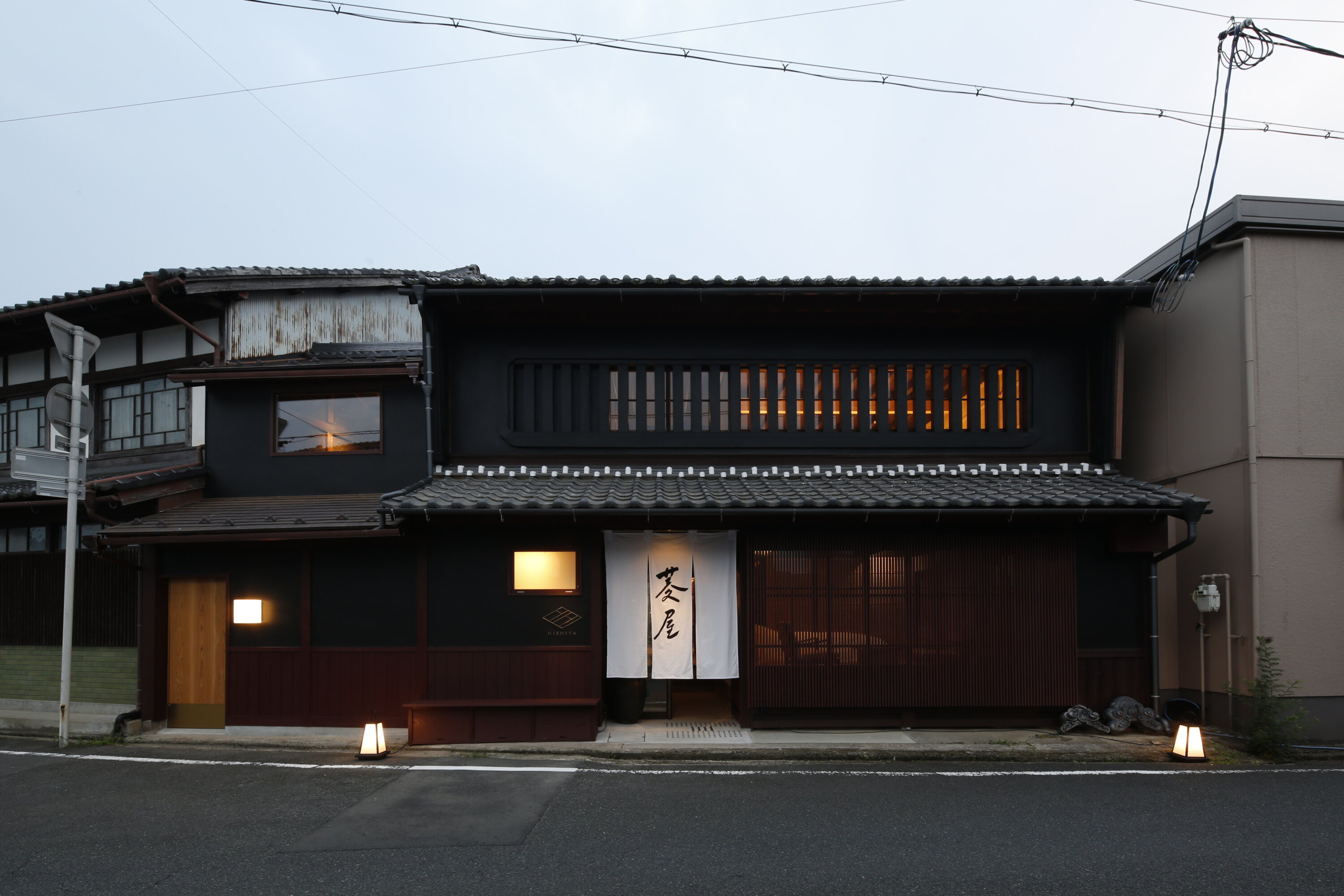 Fukuchiyama è una cittadina con castello situata nella parte nord-occidentale della prefettura di Kyoto. Hishiya si trova a Hishiya-cho, un'area in cui restano ancora le strade di un castello del XVI secolo. Sin dall'antichità, quest'area è soggetta a inondazioni e sono state costruite abitazioni con strutture uniche per proteggere i beni domestici dall'acqua. Hishiya è una piccola pensione con solo 4 stanze, costruita nell'era del Taisho (1912-1926) ed è stata riportata allo stato originale. Il gestore, un appassionato di viaggi, seleziona con cura le società tradizionali locali per decorare la pensione, al fine di accogliere gli ospiti con il fascino unico di Fukuchiyama, che non si trova in altre aree.